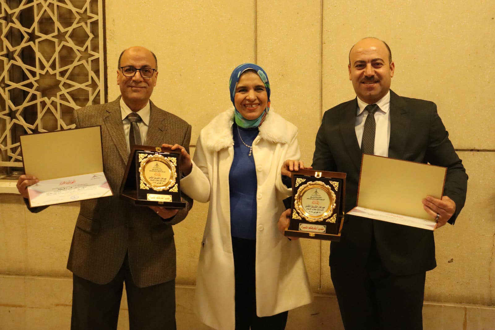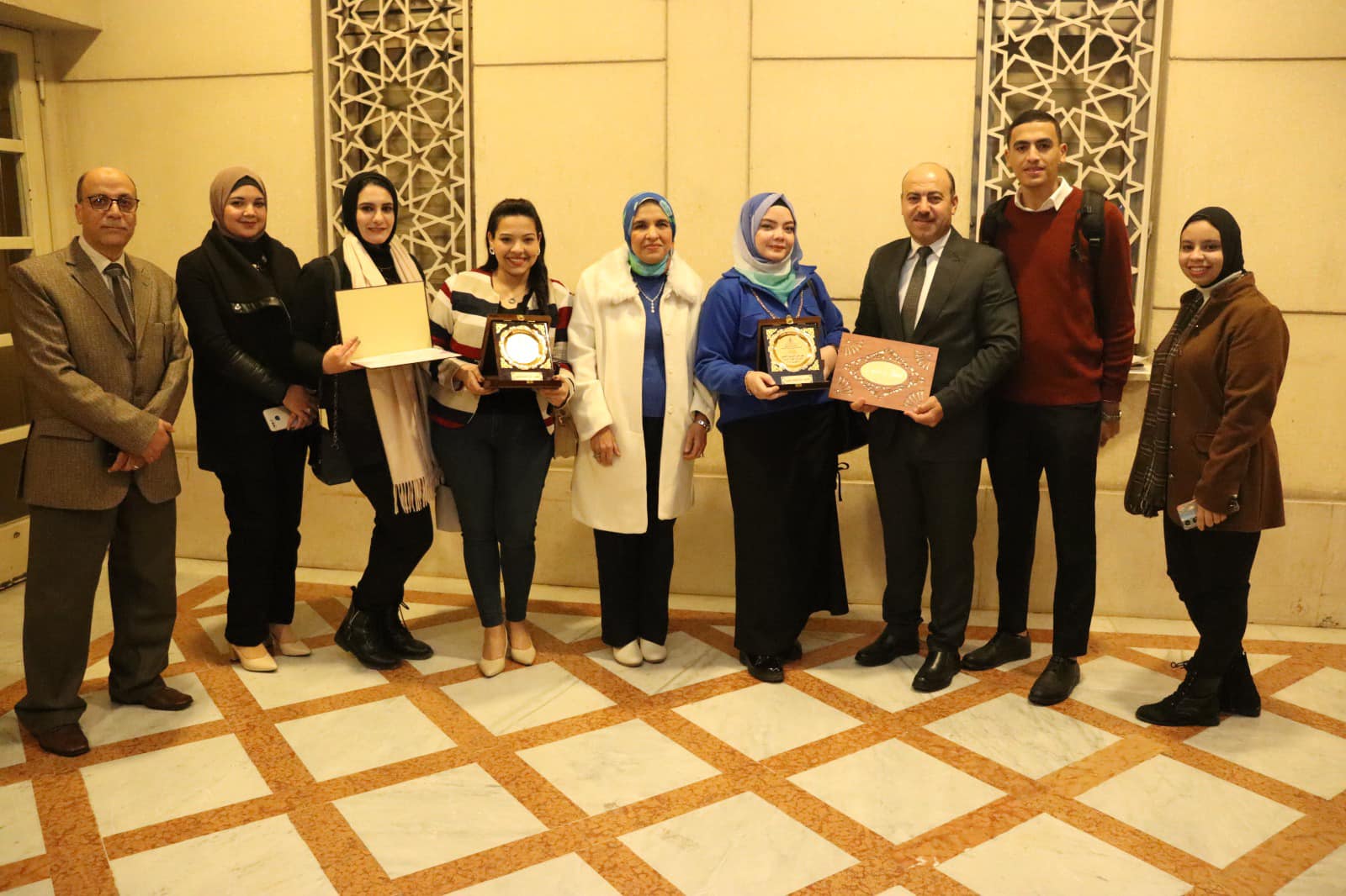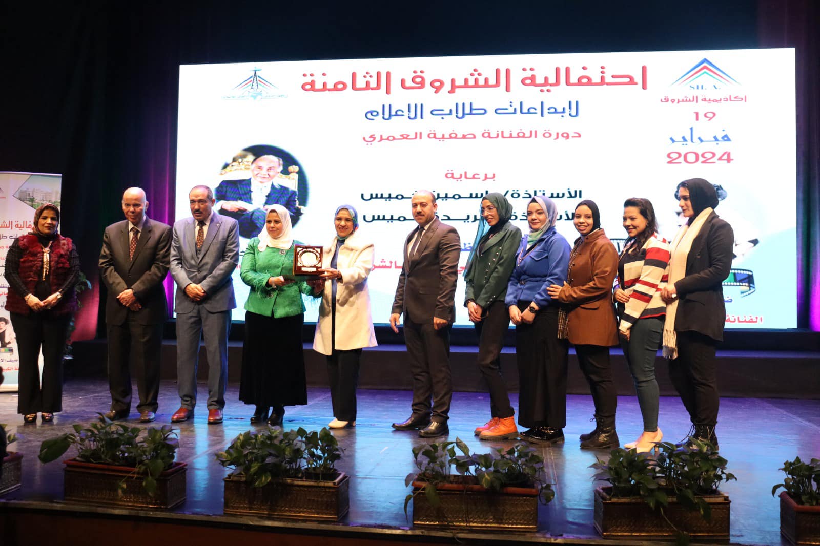 وتسلمت الأستاذ الدكتور/ غادة اليماني – عميد المعهد، درعي المهرجان، وذلك بحضور الدكتور مصطفى زيدان والأستاذ هشام سامي، وعدد من الخريجين.