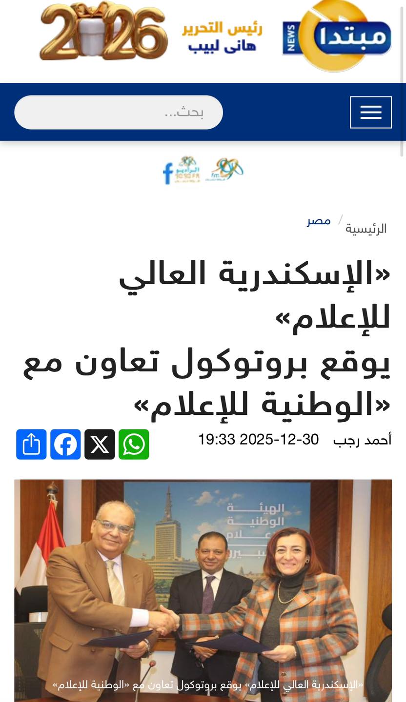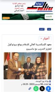 تغطية إعلامية واسعة لبروتوكول تعاون معهد الإسكندرية العالي للإعلام مع أكاديمية ماسبيرو