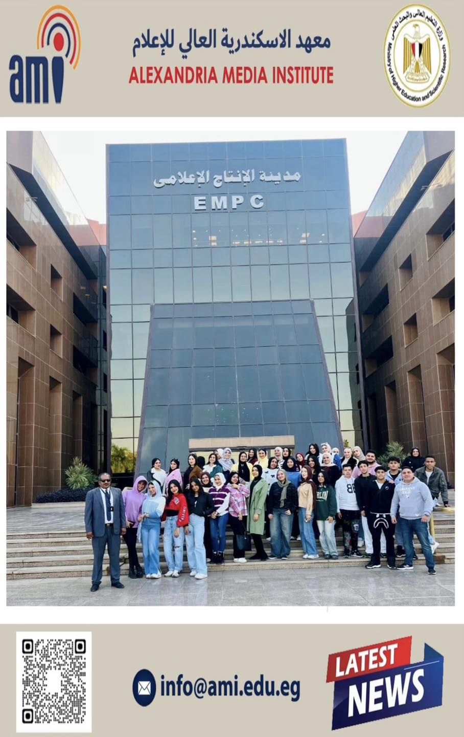 نظّم معهد الإسكندرية العالي للإعلام زيارة ميدانية إلى مدينة الإنتاج الإعلامي، تحت رعاية الأستاذة الدكتورة/ أماني ألبرت – عميدة المعهد، وبمشاركة طلاب المعهد، وذلك بإشراف الأستاذ/ أحمد حسن – مدير رعاية الشباب، وذلك يوم الأحد الموافق 14 ديسمبر 2025.