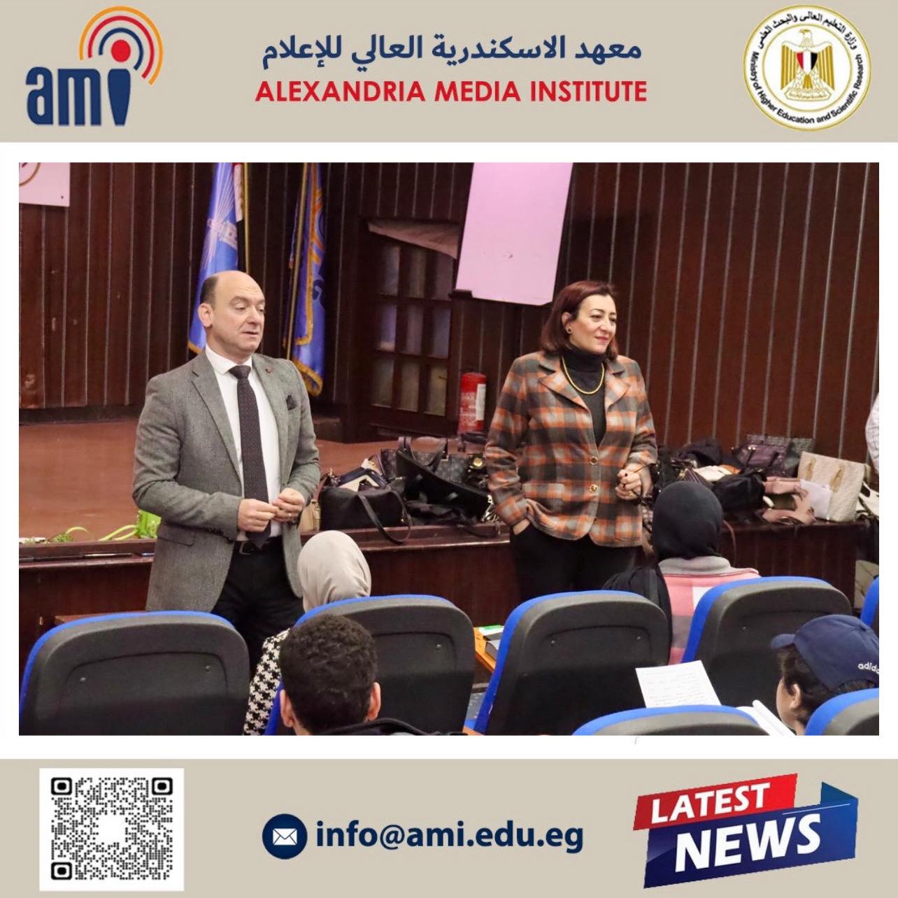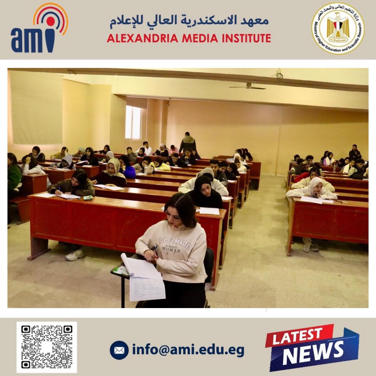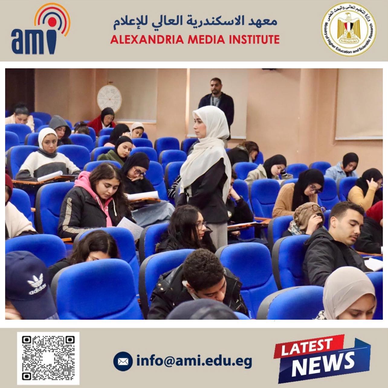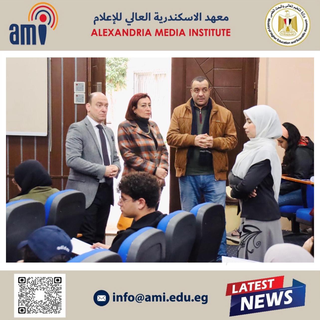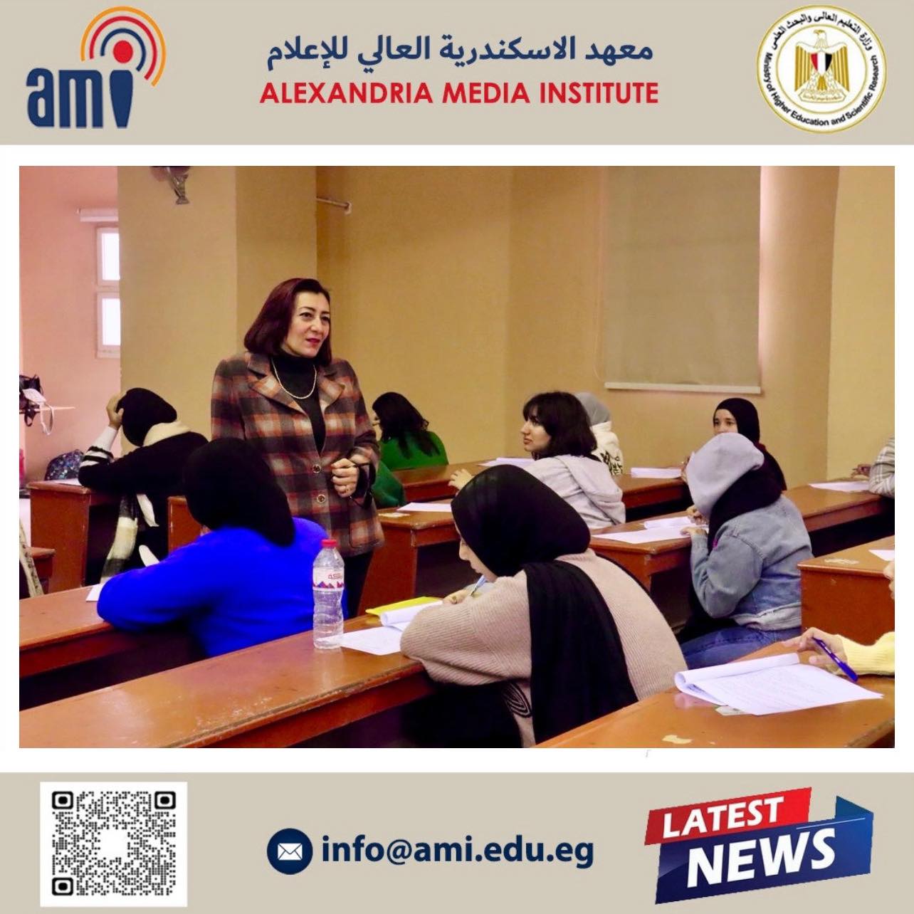 في إطار متابعة سير العملية التعليمية وضمان نجاحها، قامت الأستاذة الدكتورة أماني البرت، عميدة معهد الإسكندرية العالي للإعلام، بجولة تفقدية للجان امتحانات نهاية الفصل الدراسي الأول.