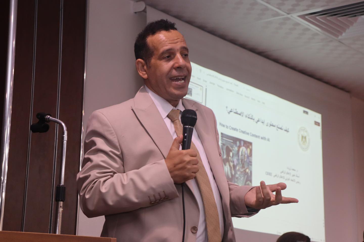 نظم معهد الإسكندرية العالي للإعلام AMI ندوة متخصصة بعنوان “صناعة المحتوى باستخدام الذكاء الاصطناعي“، وذلك يوم الإثنين الموافق ٢٧ أكتوبر ٢٠٢٥، تحت رعاية وزارة التعليم العالي – الإدارة العامة لرعاية الطلاب – إدارة النشاط الثقافي.