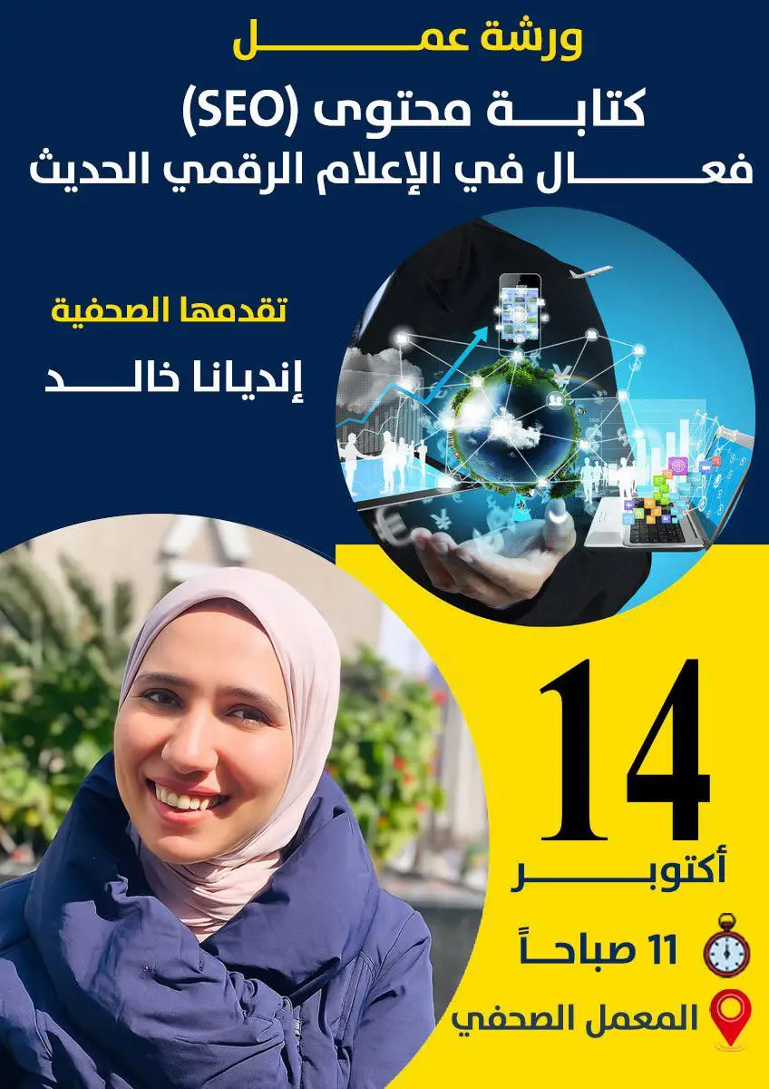 تحت رعاية أ.د/ أماني ألبرت – عميد المعهد و أ.م.د/ محمد عثمان – وكيل المعهد ورئيس قسم الصحافة ، ينظم القسم ورشة عمل جديدة بعنوان ” كتابة محتوى SEO فعال في الإعلام الرقمي ” تقدمها الصحفية/ إنديانا خالد ، وذلك يوم الثلاثاء القادم الموافق ١٤ اكتوبر ٢٠٢٥ في تمام الساعة ١١ صباحاً بالمعمل الصحفي بالدور التاني بمقر المعهد
