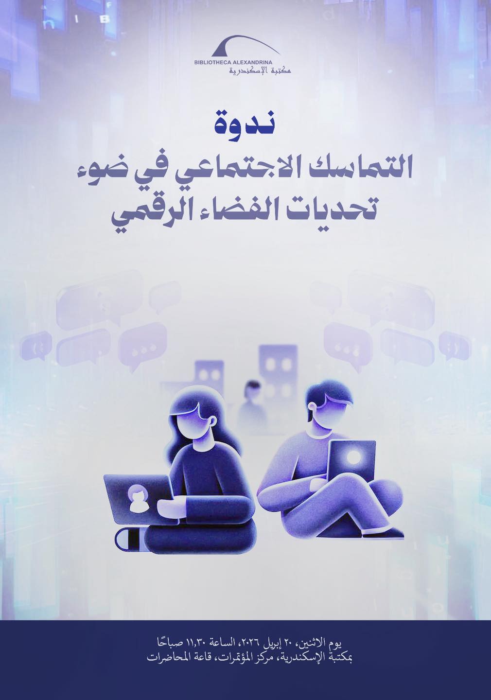 ينظم معهد الإسكندرية العالي للإعلام، بالتعاون مع مكتبة الإسكندرية، ندوة بعنوان “التماسك الاجتماعي في ضوء تحديات الفضاء الرقمي”