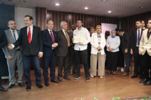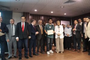 وفي ختام اليوم، قام **أ/ محمد العبيسي** نائب رئيس مجلس الإدارة، و**أ.د/ غادة اليماني**، و**أ.م.د/ محمد عثمان** بتكريم لجنة التحكيم وتسليمهم درع المعهد تقديراً لمشاركتهم ودعمهم.