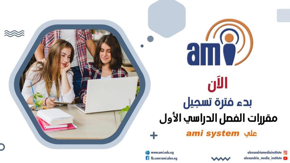 تعلن إدارة معهد الاسكندرية العالي للإعلام ami عن بدء فترة تسجيل مواد الفصل الدراسي الأول ٢٠٢٥-٢٠٢٦ اليوم السبت ١٣ سبتمبر ٢٠٢٥ و لمدة ٤ أسابيع كاملة تنتهي في الأربعاء ٨ اكتوبر ٢٠٢٥ ، و ذلك على ami system من خلال …