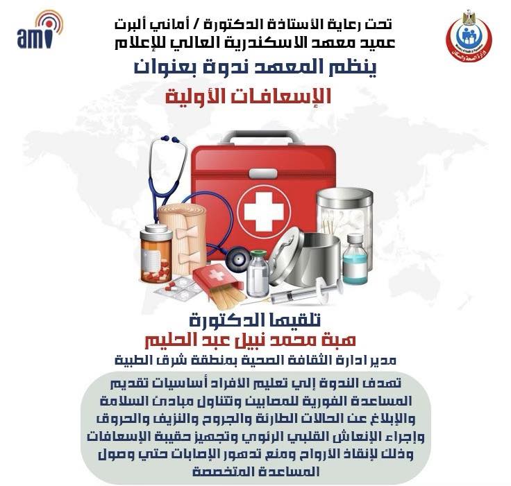 تحت رعاية الأستاذة الدكتورة/ أماني ألبرت – عميد المعهد، والأستاذ الدكتور/ مصطفى زيدان – وكيل المعهد لخدمة المجتمع وشئون البيئة، ينظم معهد الإسكندرية العالي للإعلام AMI ندوة توعوية هامة بعنوان “الإسعافات الأولية”. تهدف الندوة إلى تعليم الأفراد أساسيات تقديم المساعدة …